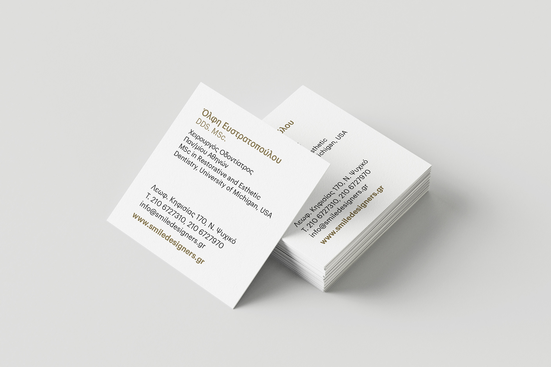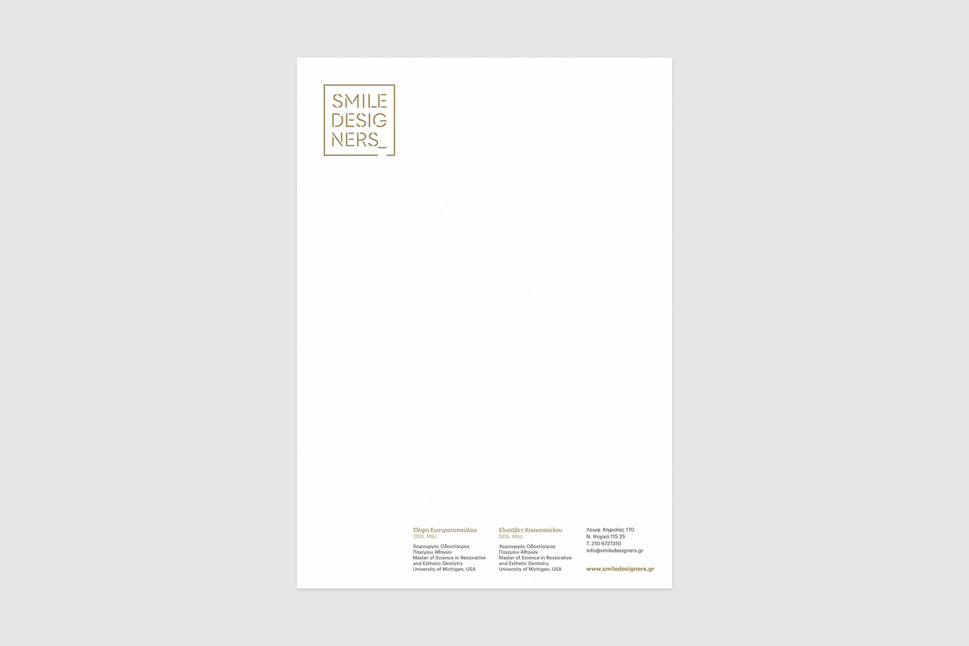 Brand identity for Smile Designers, a dental clinic in Athens focused on cosmetic and restorative dentistry.